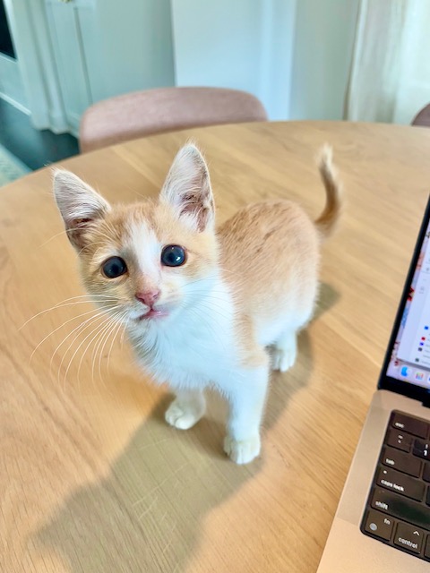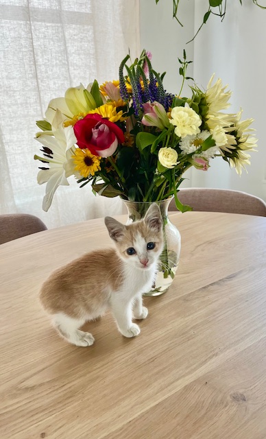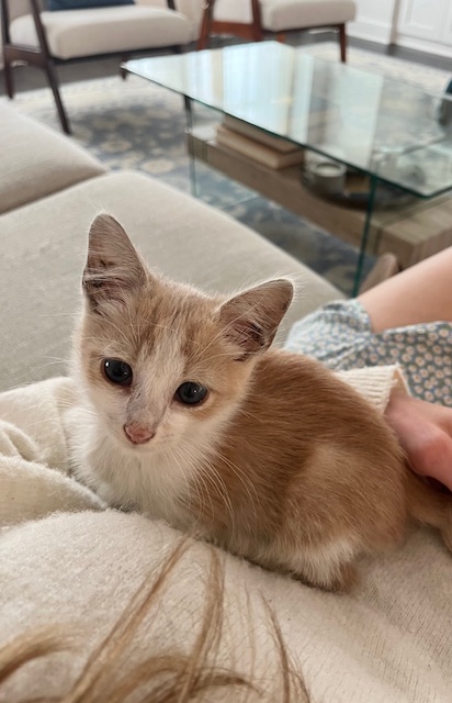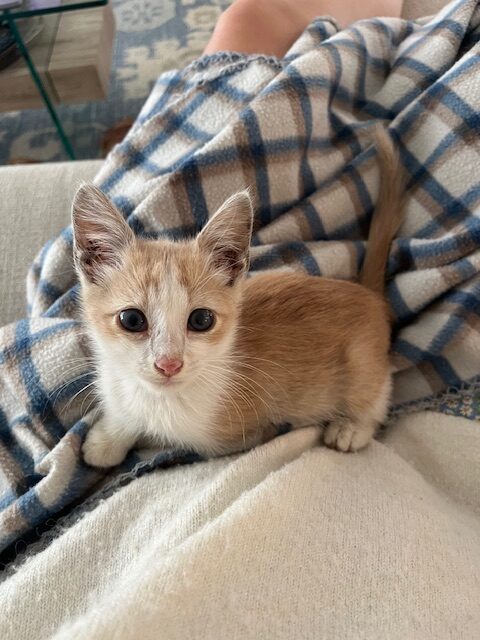 Willy is an adorable orange tabby. Born in April 2025, Willy came to us from Cobb County Animal Shelter due to overcrowding. Willy is a playful and affectionate kitten who thrives on love and attention. He has no fear and loves meeting new people. He loves to play with his best friends and roommates, Bowie and Harry. Willy is looking for a home with a friend to play with.