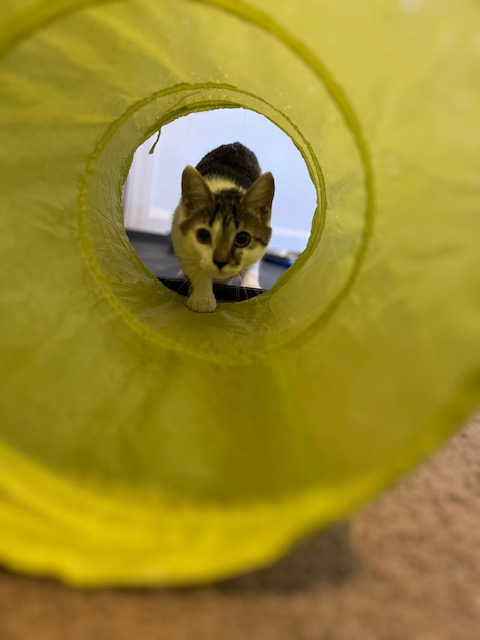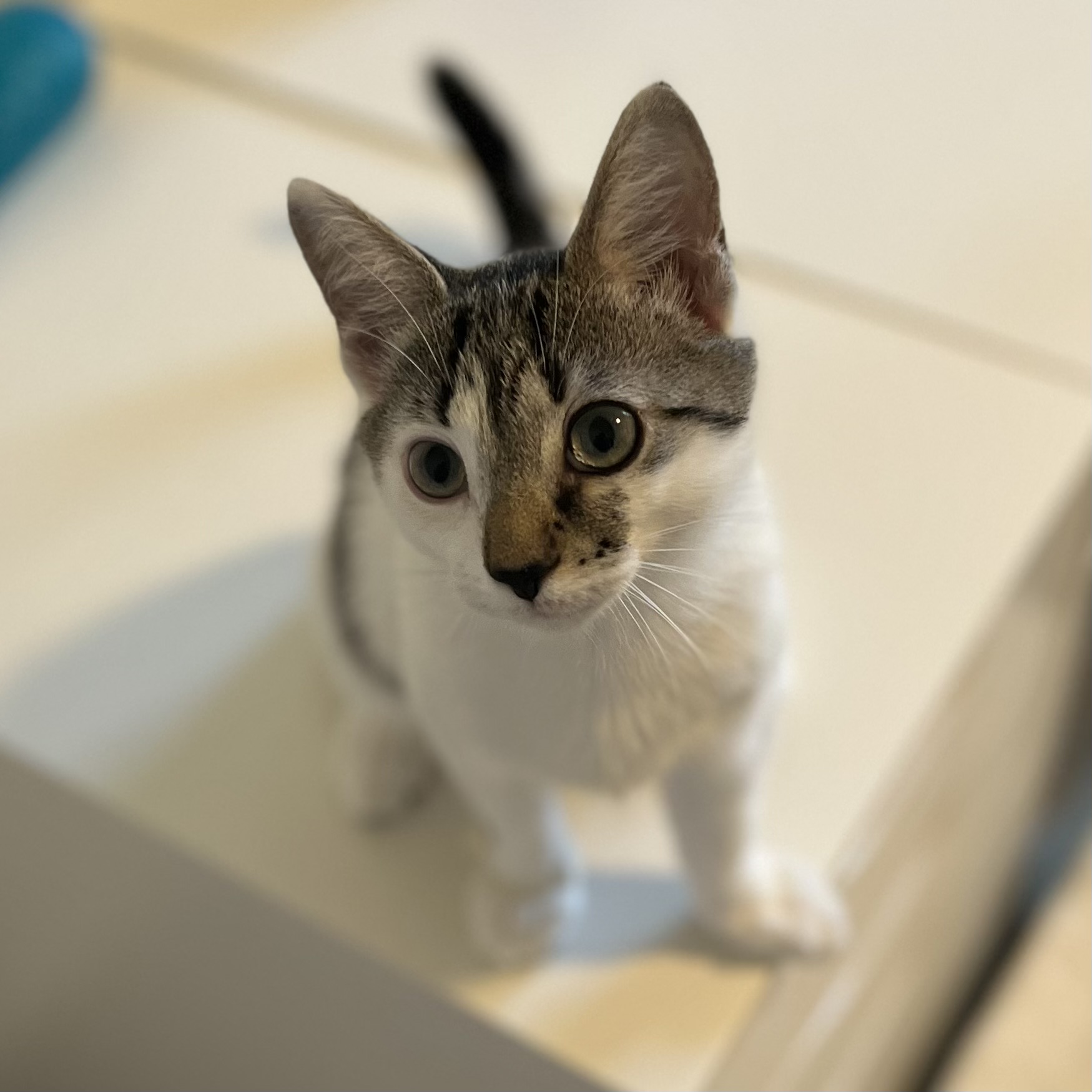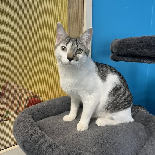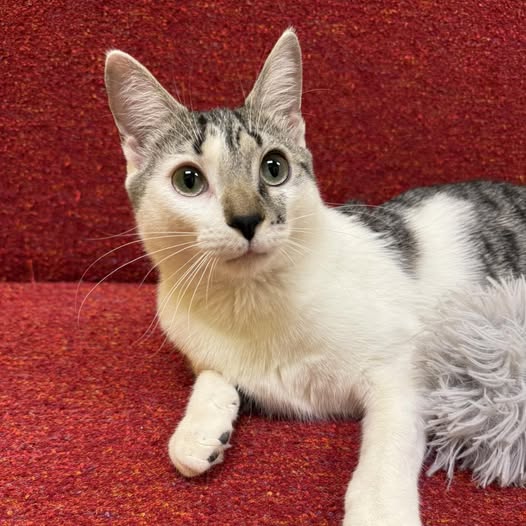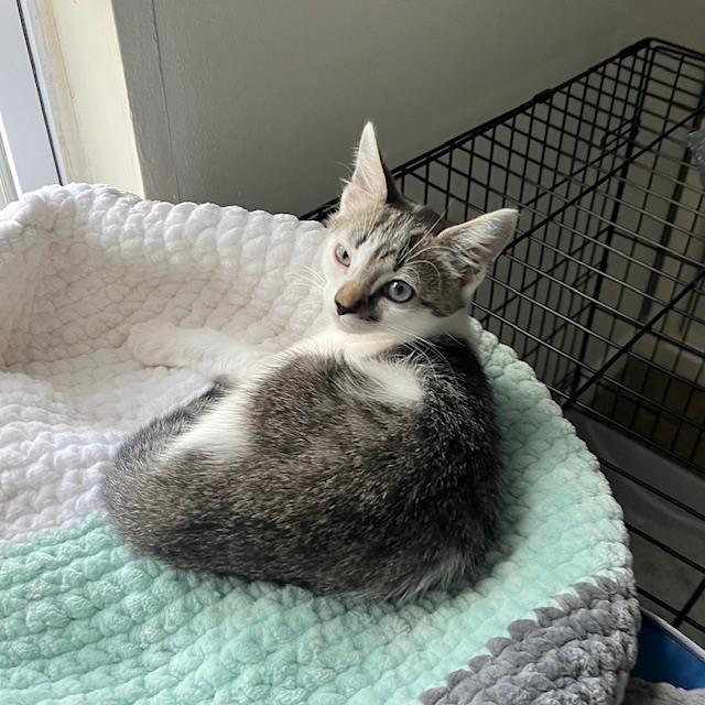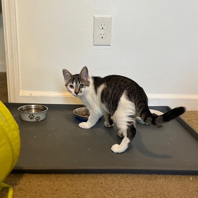 Born in June 2025, Auggie is a playful kitten who loves the wand and thrives on love and attention. He tends to be a little shy with new people but warms up quickly. Auggie would love a home with another cat friend to play with.