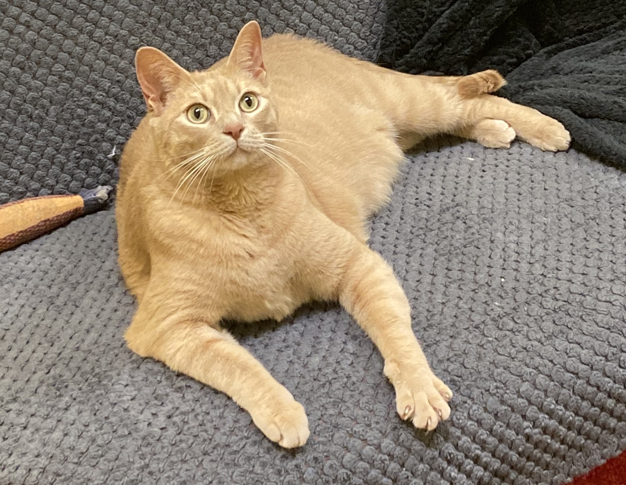 Meet Gus, a handsome orange tabby with soulful eyes and a big personality. Born in February 2021, Gus is a playful, affectionate boy who thrives on love and human connection. He’s friendly with everyone he meets and quickly wins hearts with his easygoing, social nature.