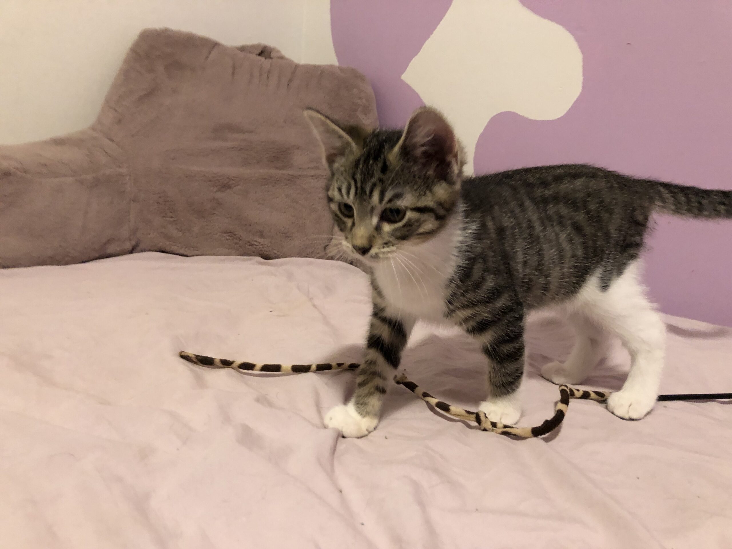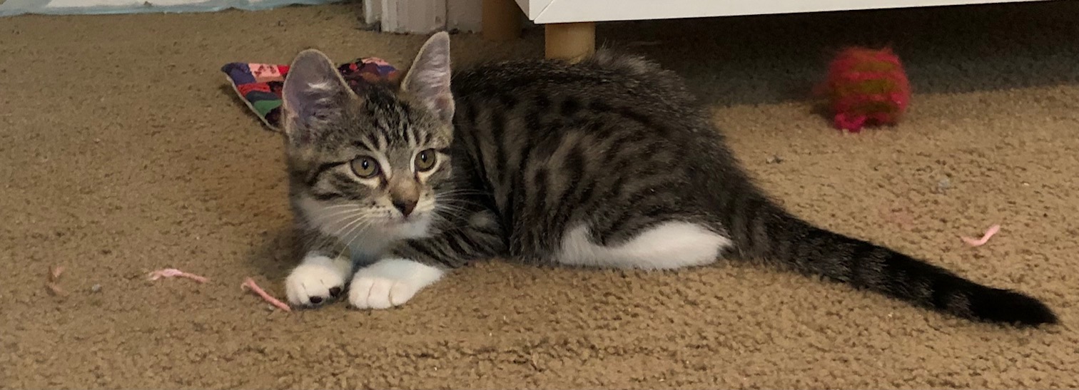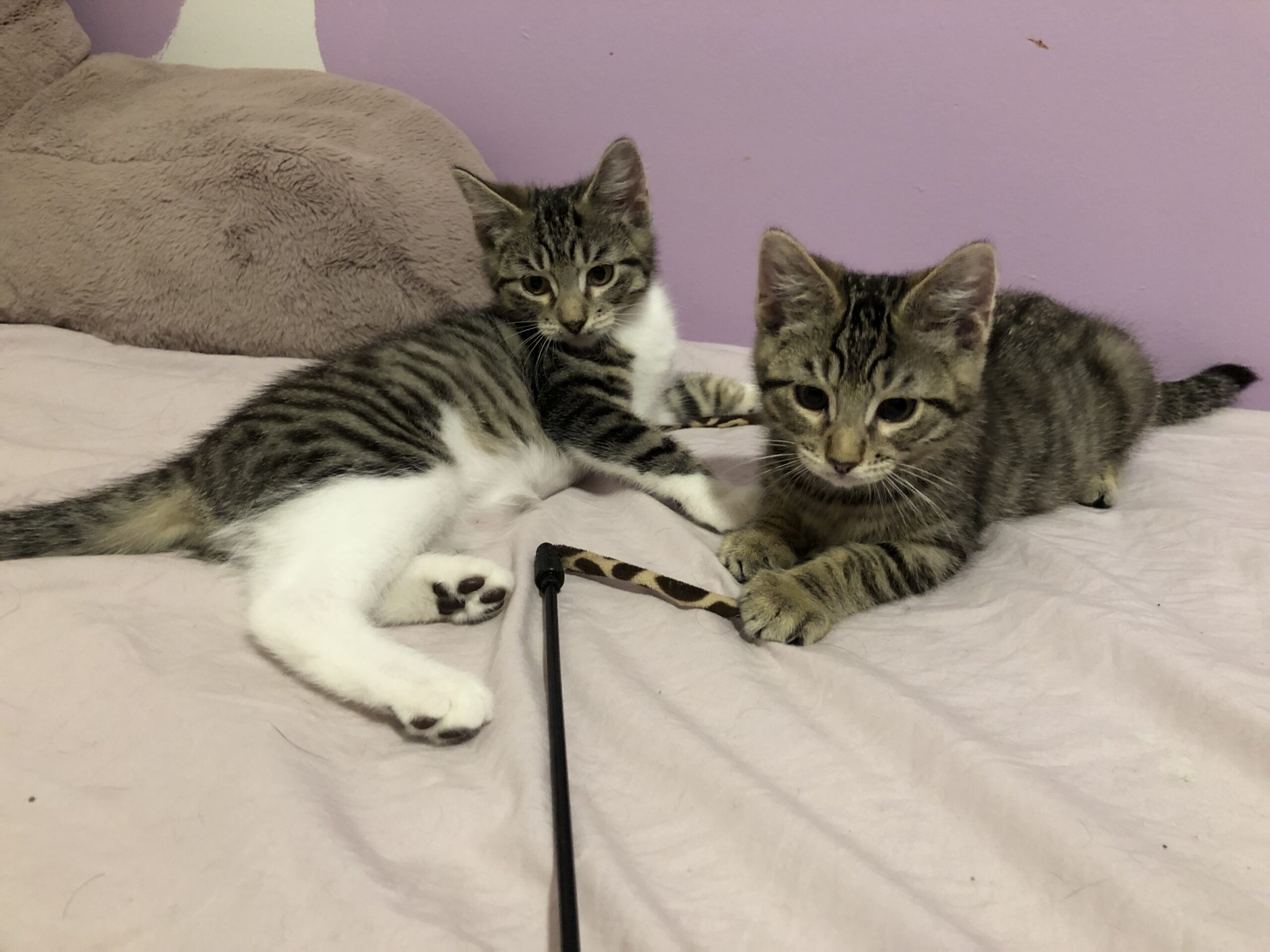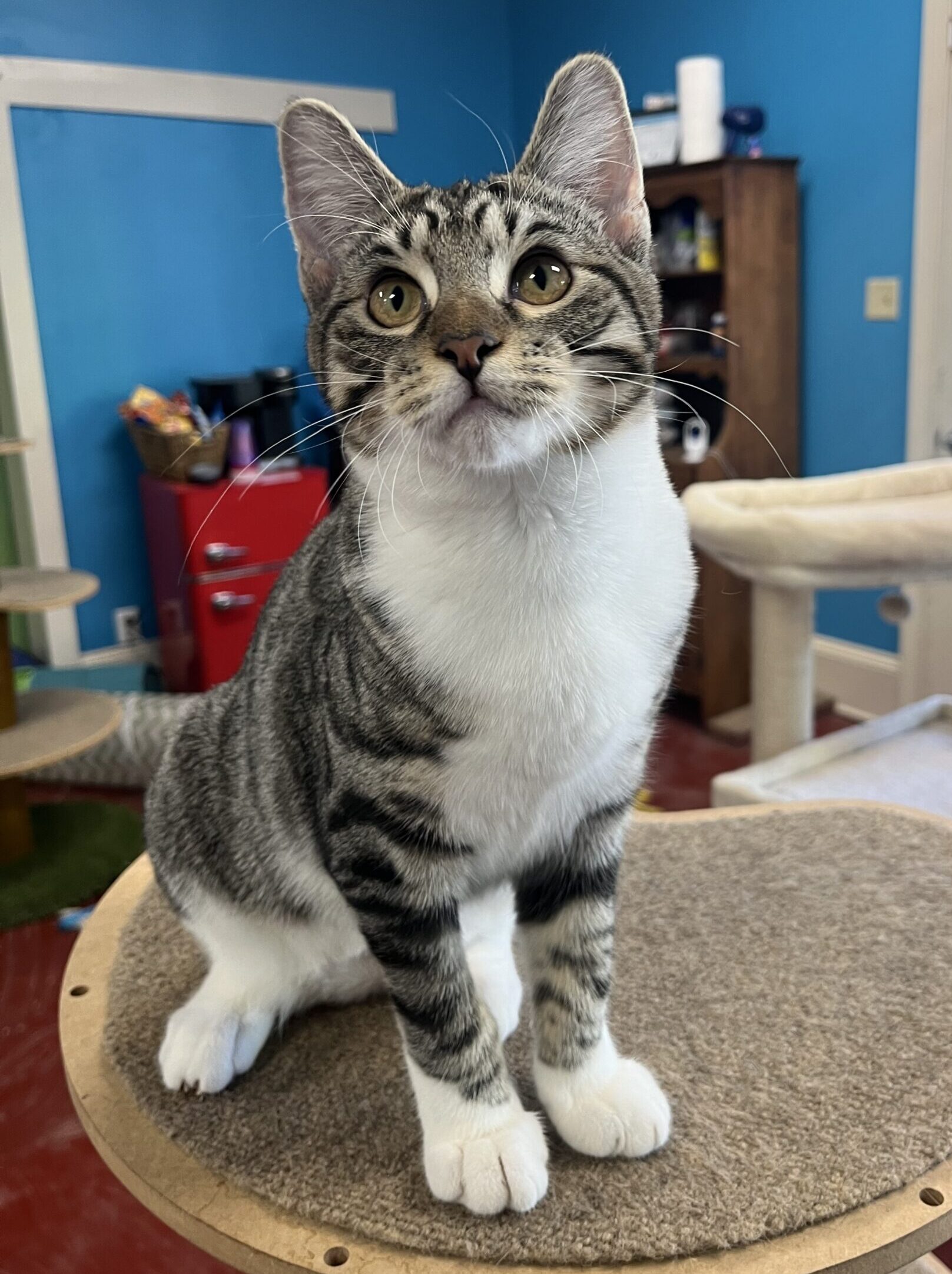 Darla is the chill one out of the little rascal pair. She eats and plays and then powers down for a long nap. She also loves to climb and be the queen of the cat tower! But of course she can’t do anything without her brother Spanky! The little dynamic duo are never seen apart and would love to share the space on your lap. Cuddles and purrs are what they’re all about.